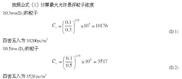 大于或等于表中被考虑的粒径的最大浓度限值 (pc/m3空气浓度限值按3.2中的公式计算) |