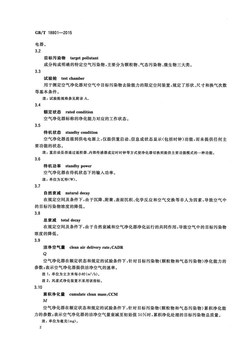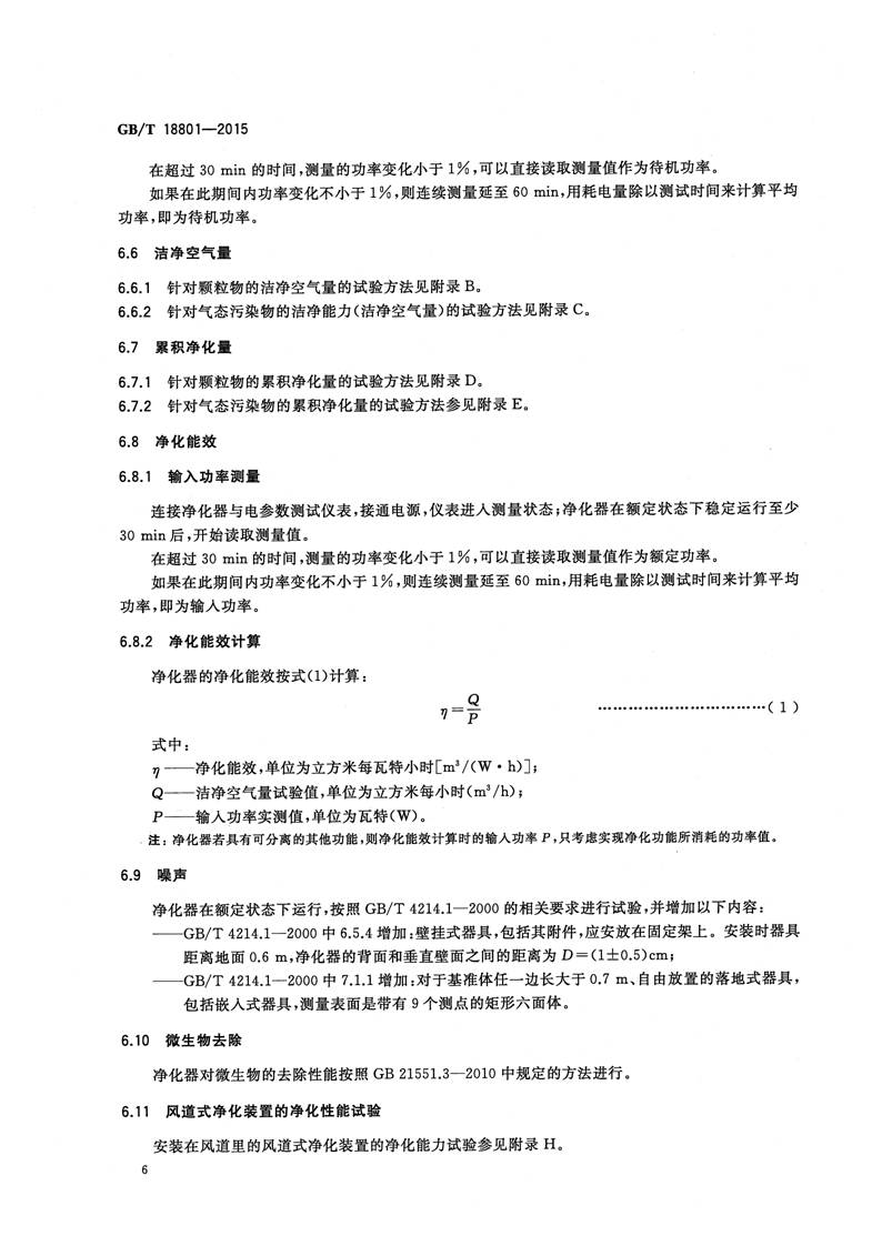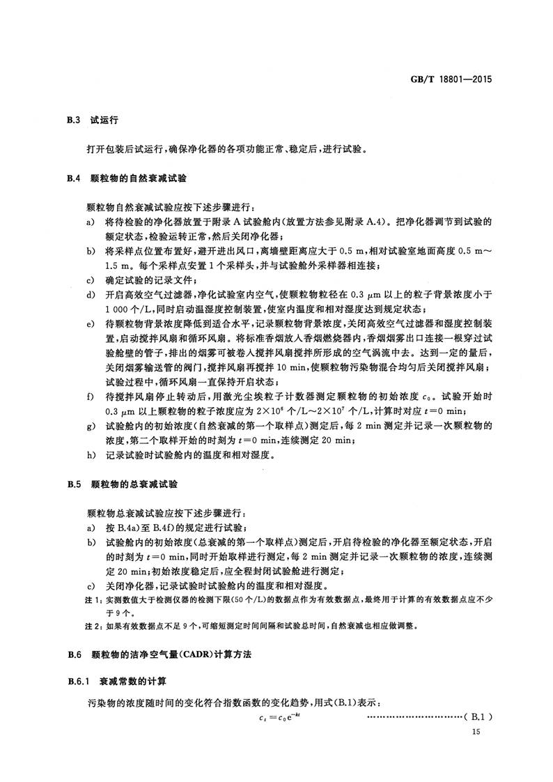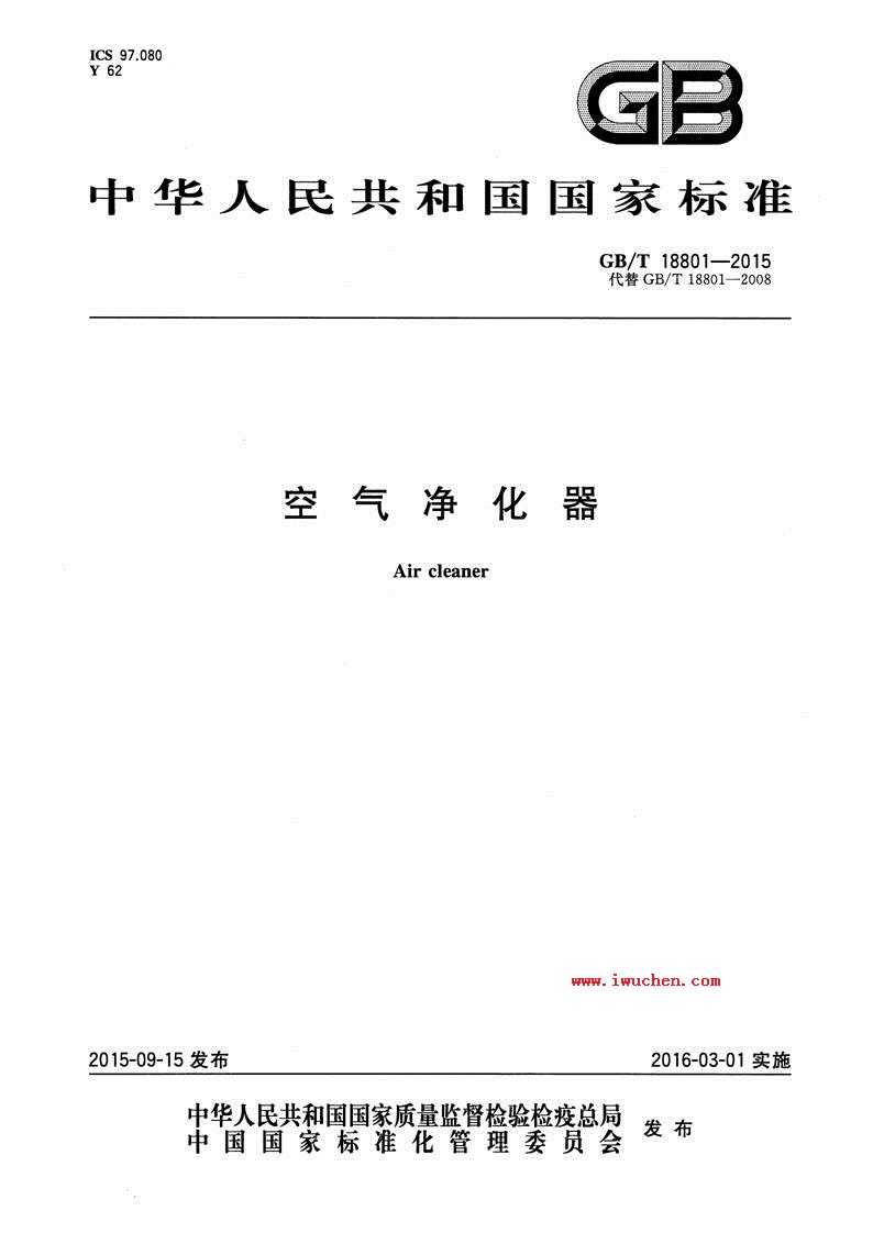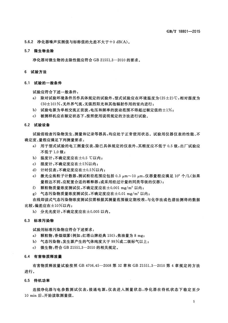 GB/T 18801-2015 空气净化器标准(新国标全文版)
