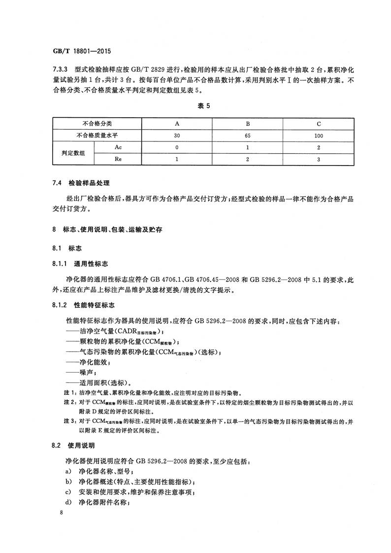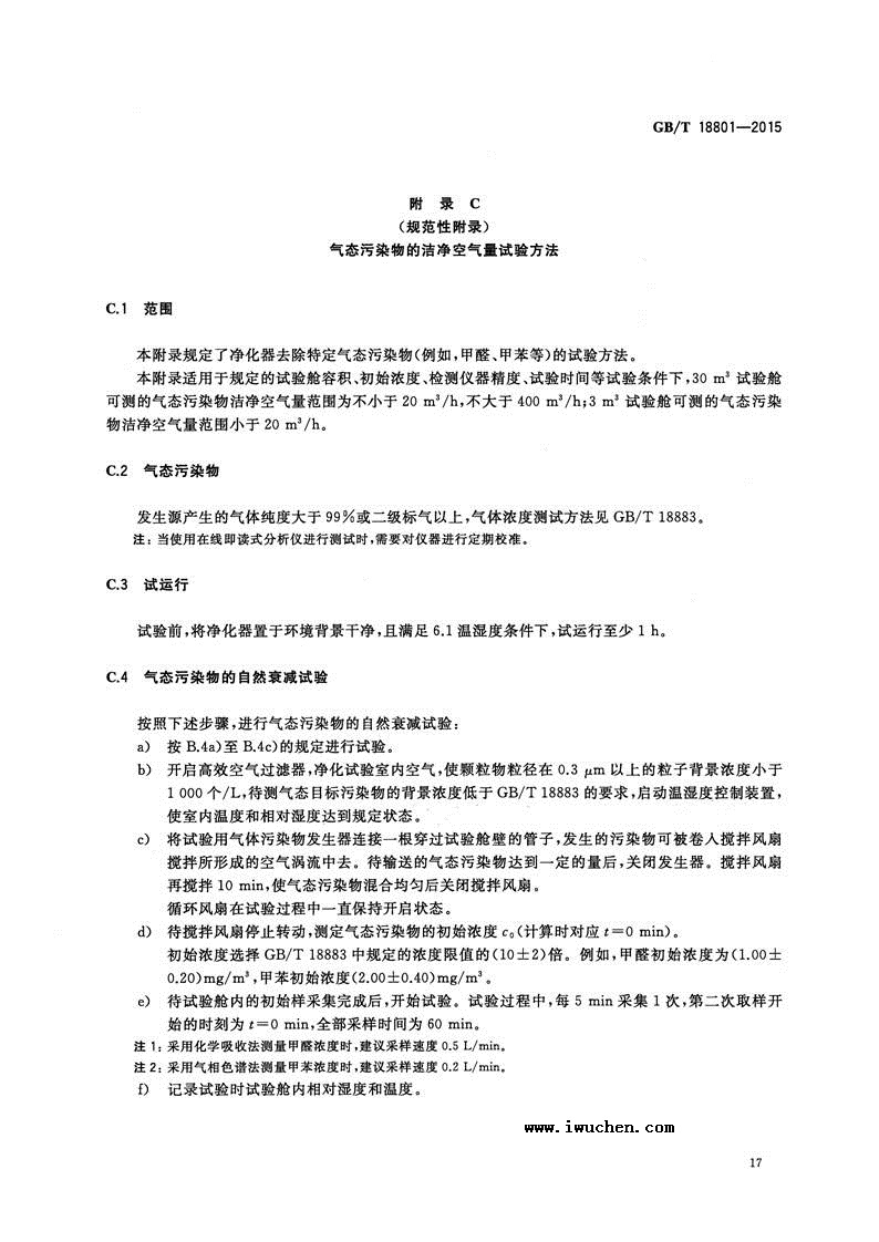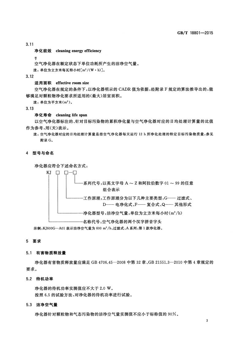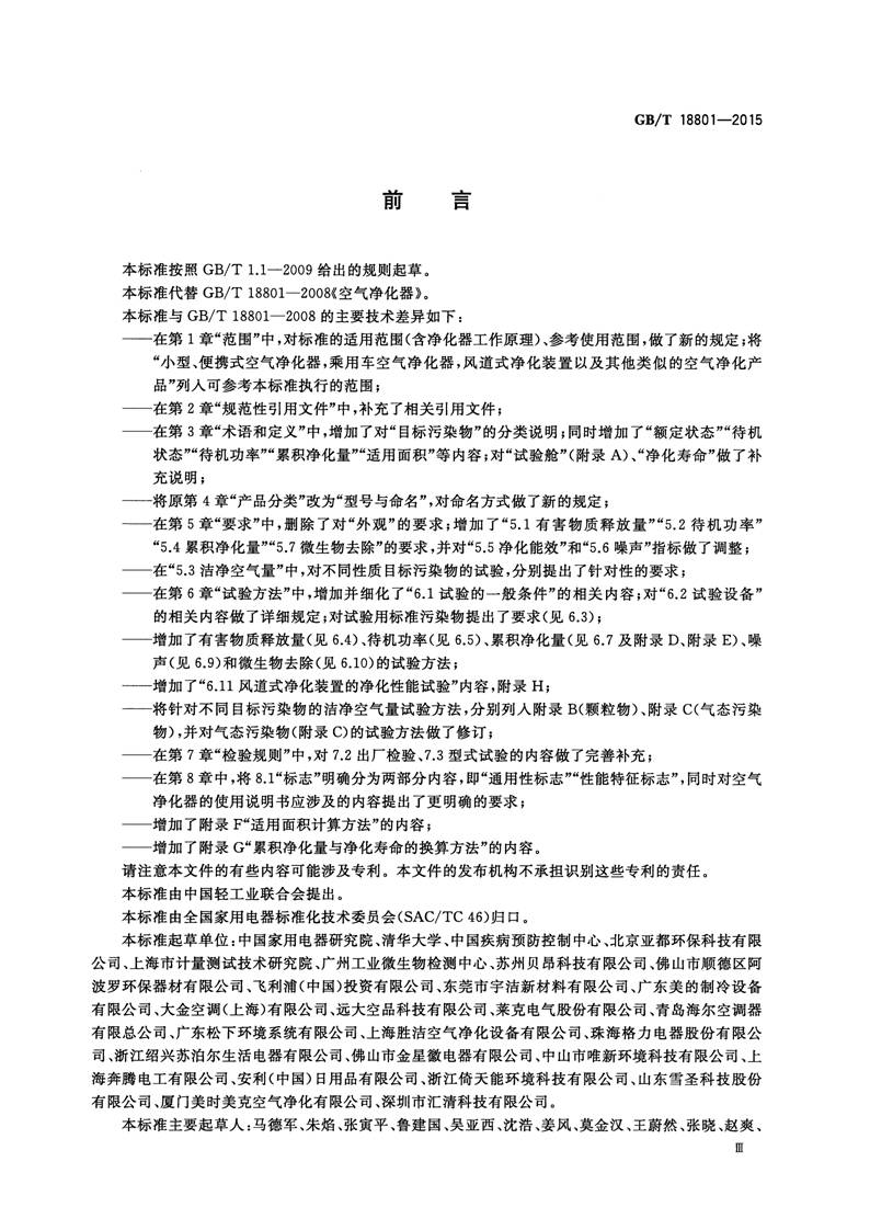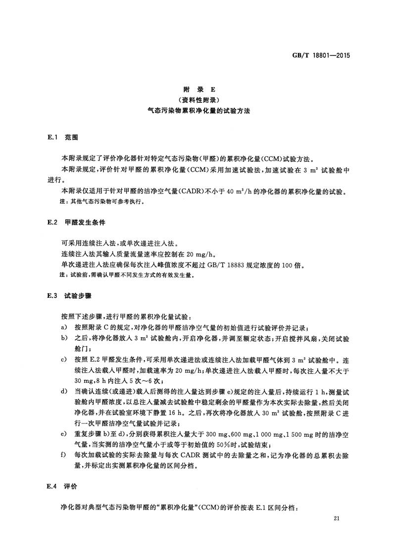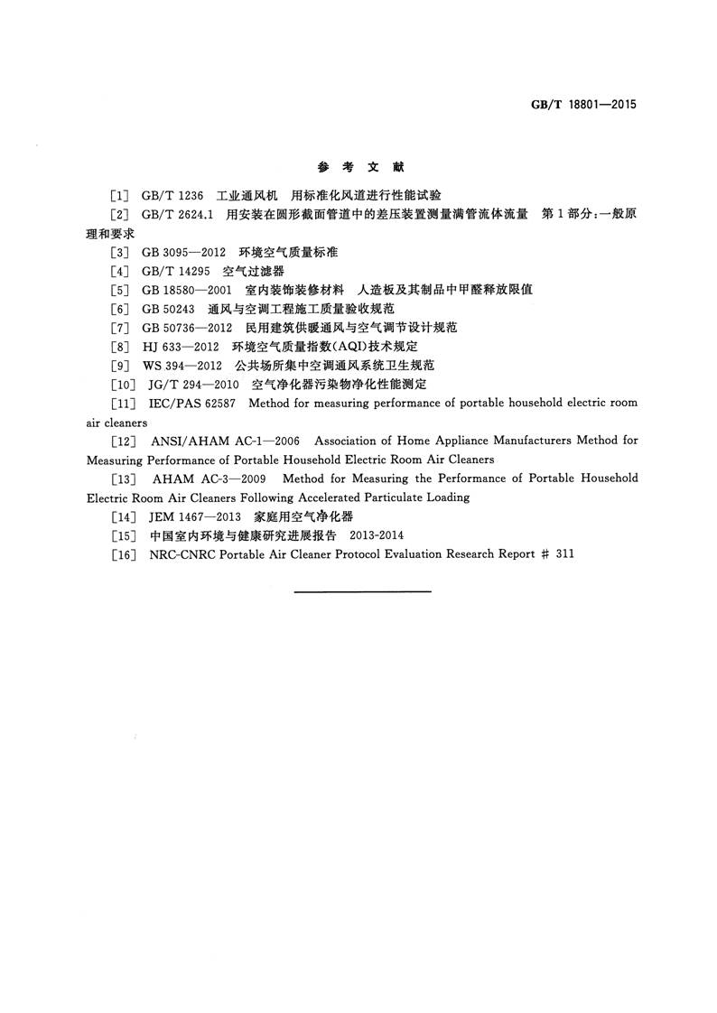 GB/T 18801-2015 空气净化器标准(新国标全文版)