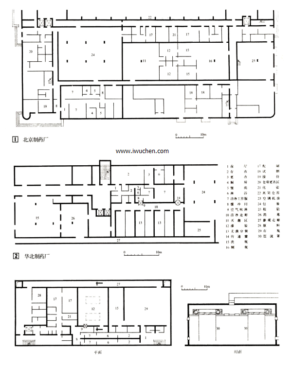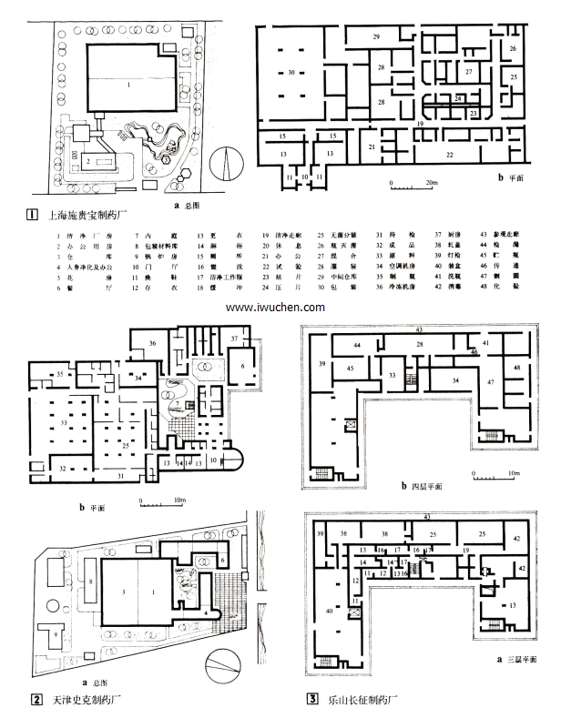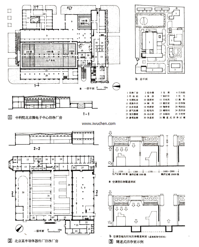 1学生从附录给出的洁净室参考图中选定一种平面形式(一层或二层),将其细化,并自行选定一建筑地点。