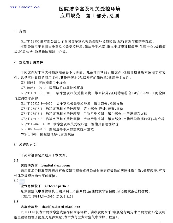 医院洁净室及相关受控环境应用规范(GB/T33556.1-2017)全文完整版