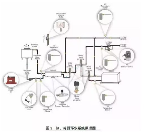 对于一个中央空调系统,还会有配备热水,冷水的管路系统以及设备,这些都需要配备必须的自动化控制仪器仪表。