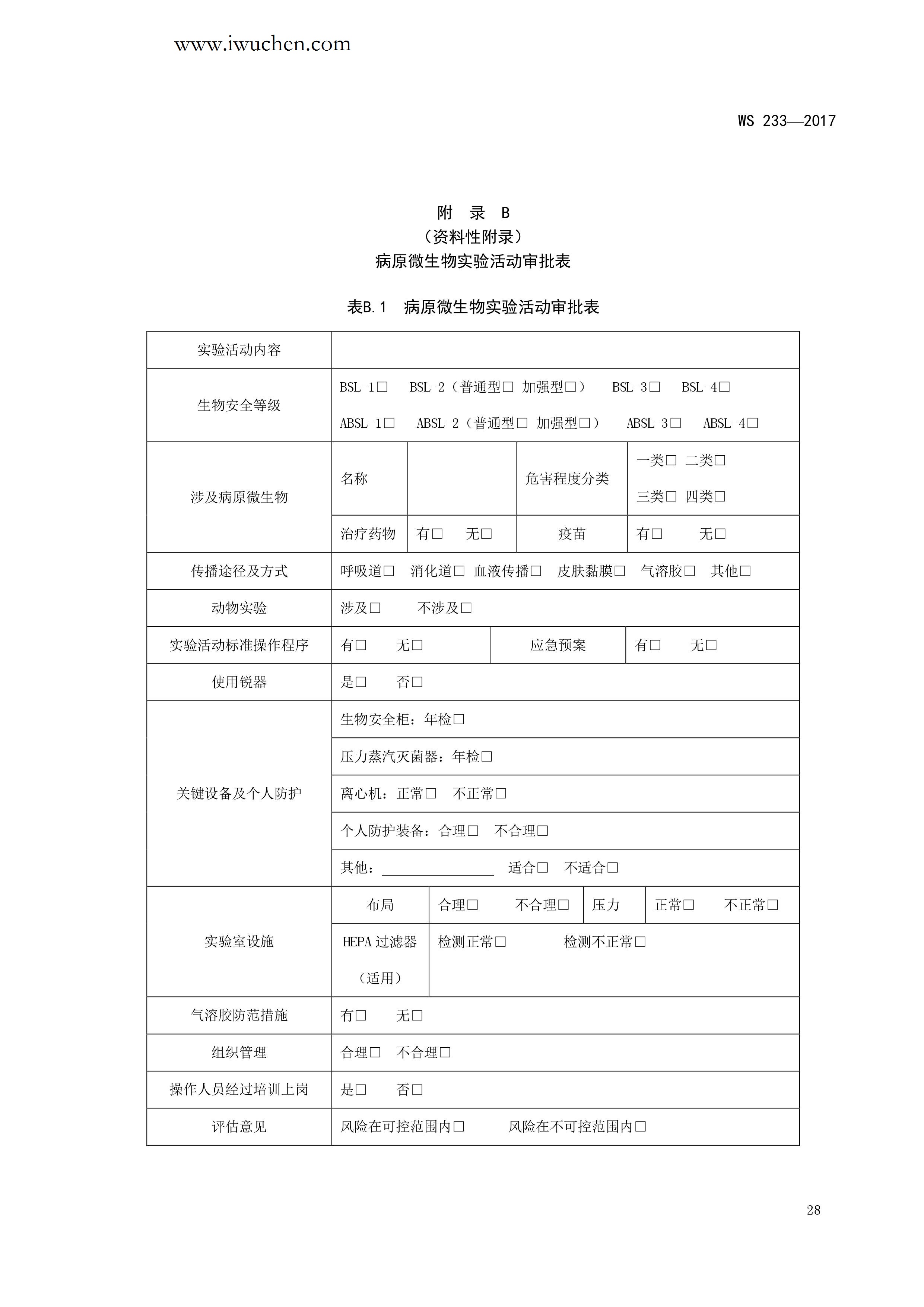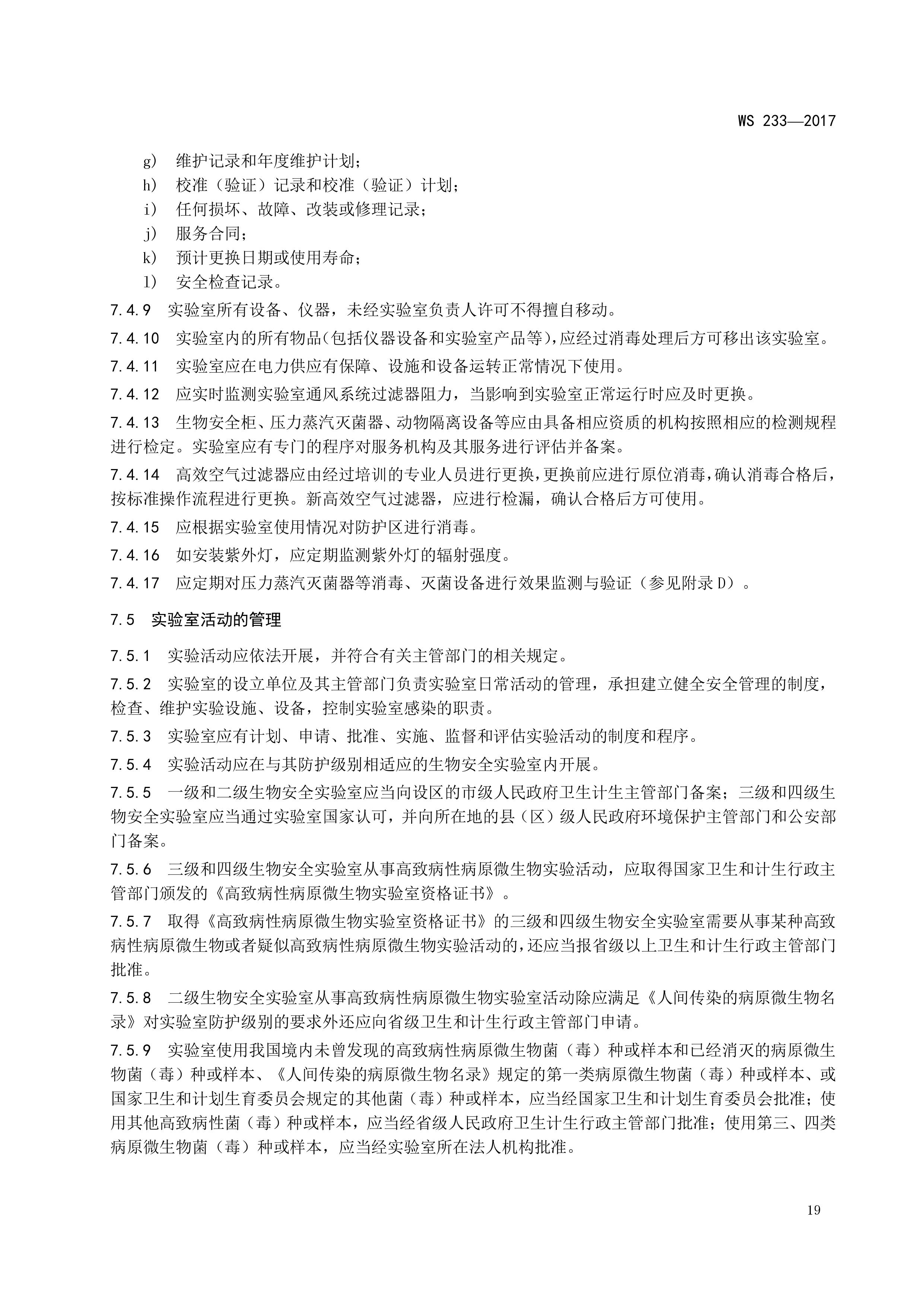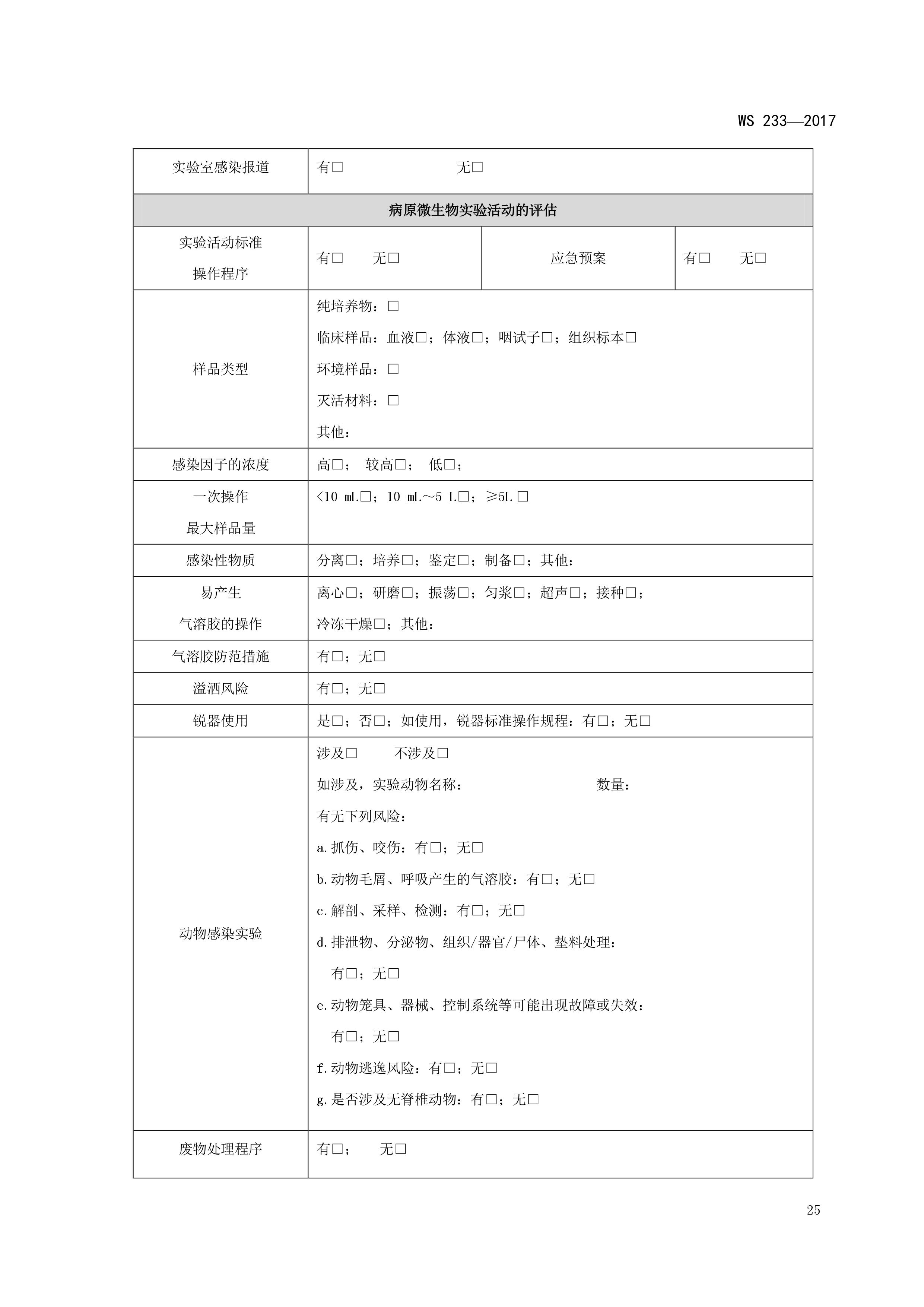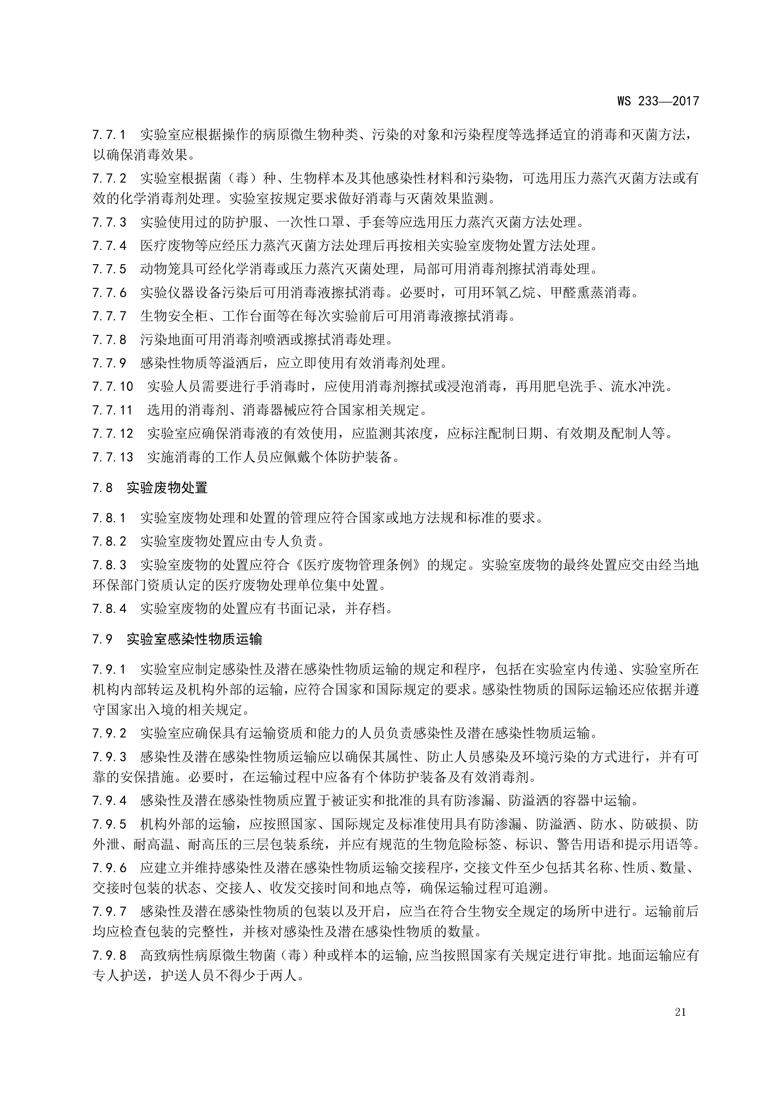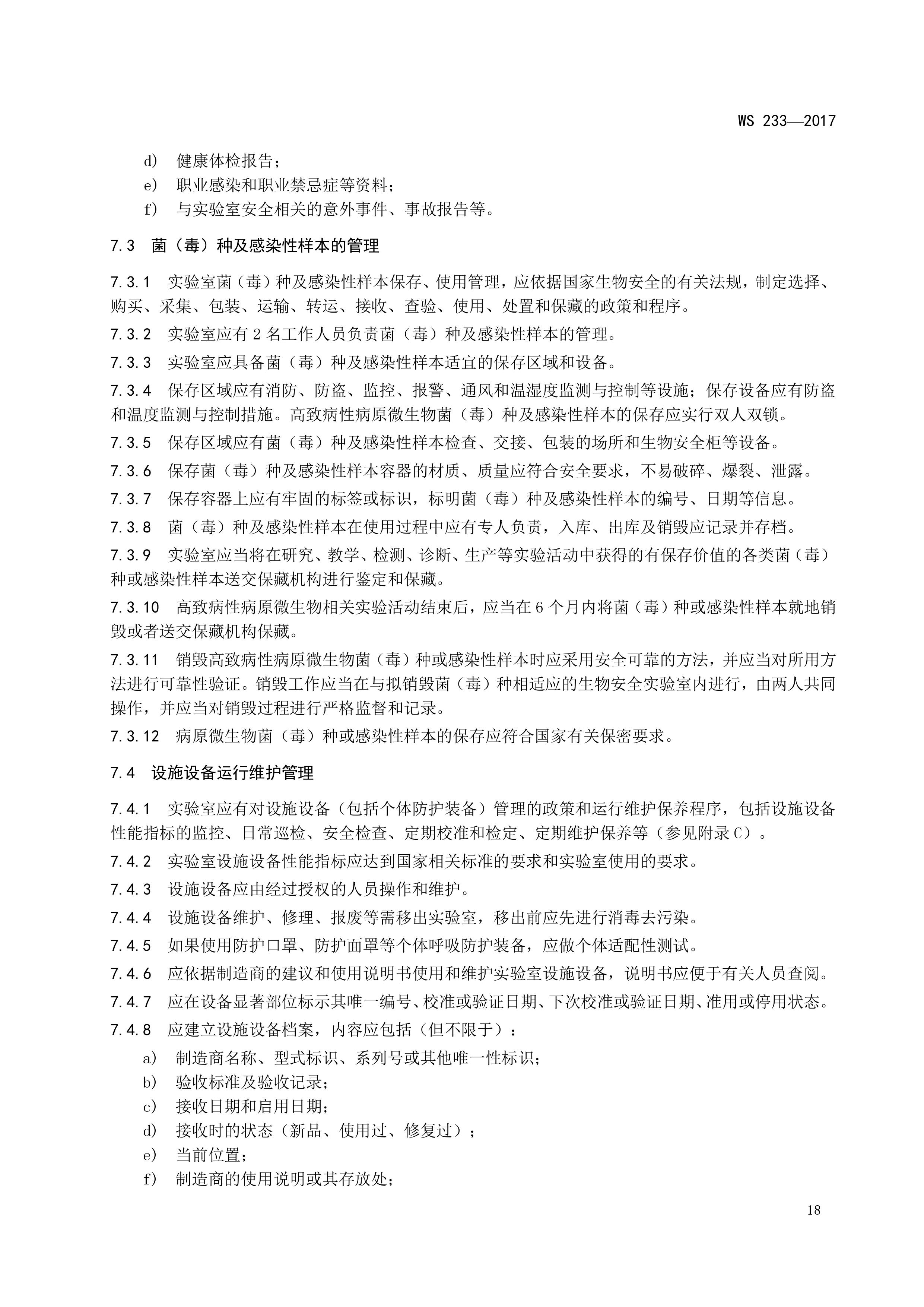 病原微生物实验室生物安全通用准则WS233-2017(全文版)