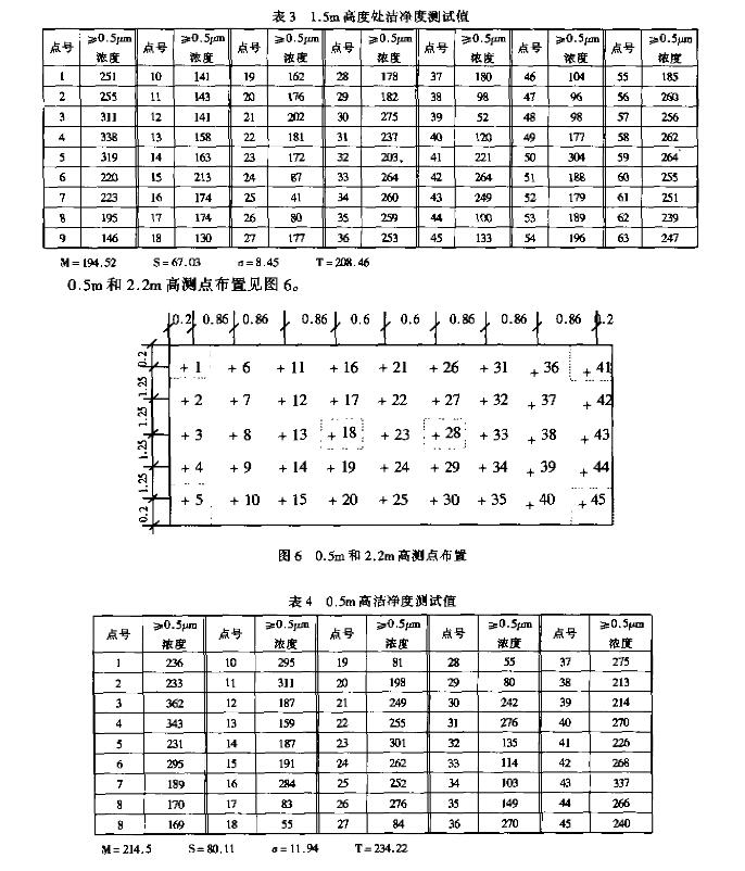 1、洁净度测点布置和实测结果