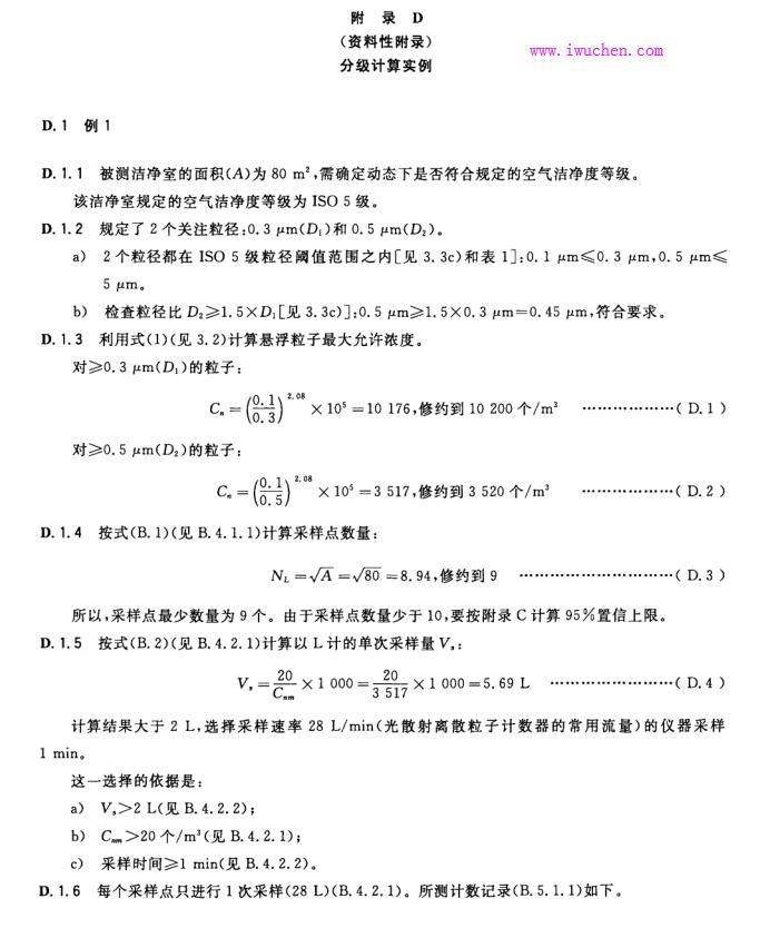 该浓度系指粒径大于或等于阈值(低限)粒径的粒子总数,规定的阔值(低限)粒径为 0. 1 μm-5 μm。本部未设立 0. 1μm-5 μm 规定粒径以外粒子总数的洁净度等级 。但可以用 U 描述符和 M 描述符,分别表述超微粒子 (5 μm)的总数。本部分不能用于描述空气悬浮粒子的物理、化学、放射性或存活特性。