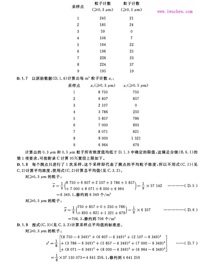 若每个采样点测得的粒子浓度平均值 ,以及适用时按 B. 5. 2 计算的 95 % 置信上限,均未超过按 3. 2
