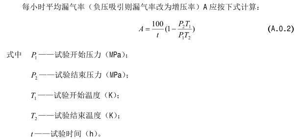 A.0.2 系统安装后应做气密检查。保压24h后平均每小时漏气率应不大于表A.0.2的规定。