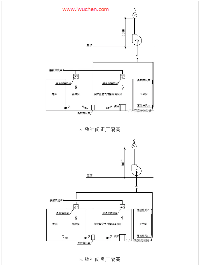 a.缓冲间正压隔离 b.缓冲间负压隔离 |