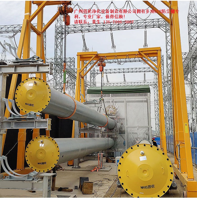 广州佰伦净化公司基于特高压扩建工程1000kV GIS 现场安装的特点,借鉴以往和南网和国网的多个成功案例实践经验,开展特高压扩建工程GIS安装用移动式防尘室设计优化与推广应用研究,以适应不同平面布置的扩建工程不同厂家生产的GIS 安装工作,确保特高压变电站扩建工程GIS安装防尘效果,使安装洁净等级达到百万级,并实现全天候安装,达到新建工程应用移动车间的效果,为扩建工程安全优质按期完成施工任务提供有力保障。