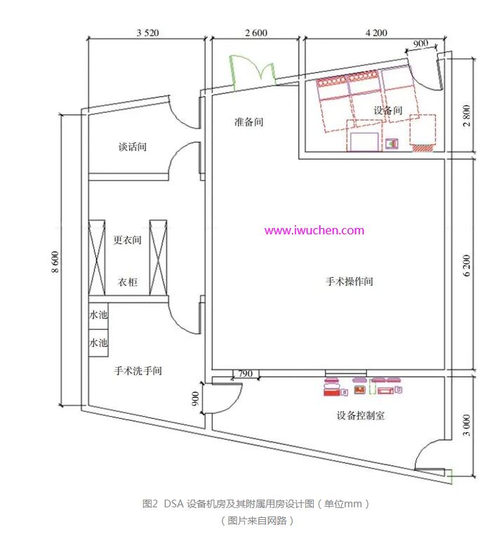 更衣室、谈话间和手术洗手间应有足够空间,保证医患通道的独立。特别需要注意的是,为了节省空间,将设备附属机柜放置在操作室内的做法会造成机柜过热等问题,影响设备使用,故应确保设备机柜的独立房间和专用空调。