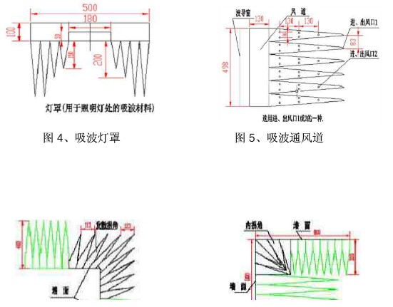 1.4. 吸波材料:角锥型吸波材料,高度0.5米;氧指数大于60;功率承载能力大于3kw/m2;材料性能稳定;采用龙骨背架安装;对人体无危害、抗热、耐火.满足美国海军NRL Report NO8093(test 1、2 and 3)要求