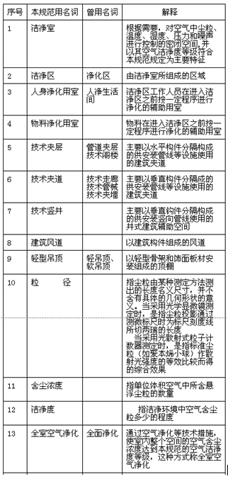 本规范共分八章和七个附录,主要的内容有:总则、空气洁净度等级、总体设计、建筑、空气净化、给水排水、工业气体管道、电气等。
