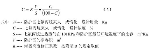 七氟丙烷灭火(或惰化)设计浓度 |