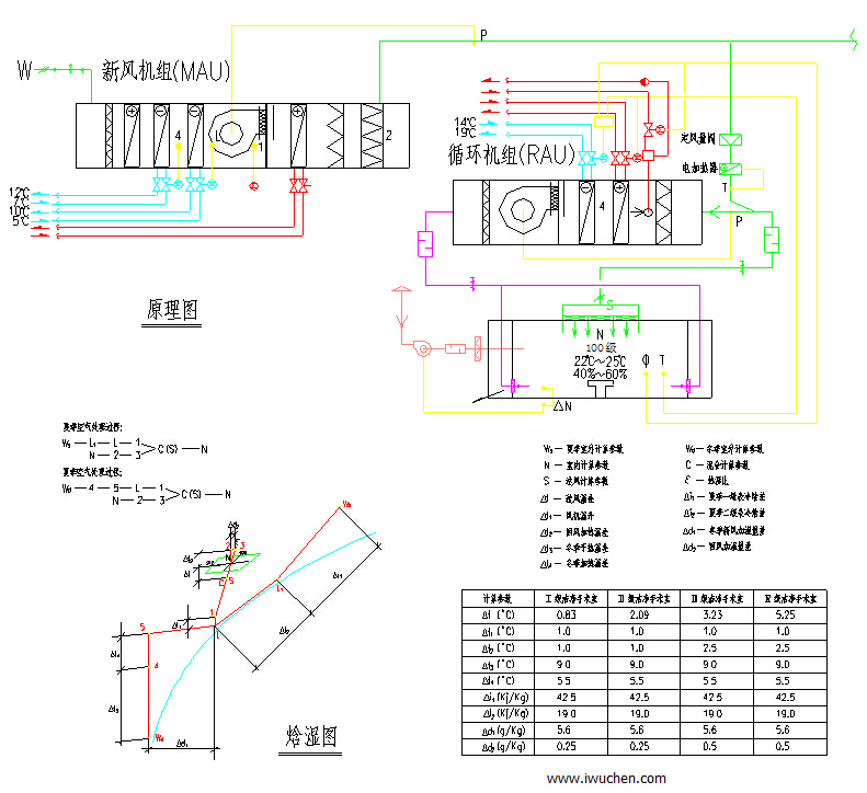 2、第二、第三方案的冷量、热量、加湿量基本相同,第四方案的能耗都小于第二,第三方案,但是在洁净手术室不工作的时间(大约占总时间的2/3)为了保证手术室的洁净度不受外界污染,就必须维持室内的一定正压,即必须向不工作的洁净手术室送一定量的经空调处理的洁净新风,此时第二方案不仅新风机组要运行而且循环机组内的风机也要开启,而第三方案和第四方案仅新风机组运行循环机组可停机节电,这就显出第三和第四方案的优点了。