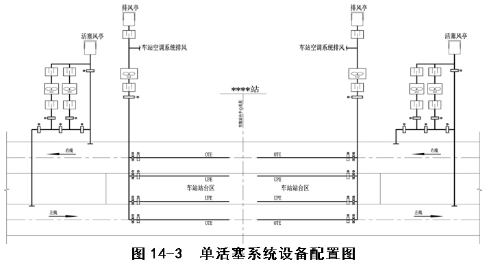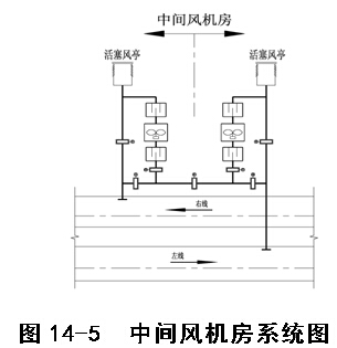 列车正常运行时,车站隧道通风系统投入运行而区间隧道通风系统停止运行。在一般区间隧道内利用活塞作用、通过车站两端的活塞风井进行通风换气排除区间隧道的余热余湿;在设有中间风井的区间隧道,开启区间隧道中间风井,利用列车活塞作用,通过车站两端的活塞风井和区间隧道中间风井进行通风换气排除区间隧道的余热余湿。