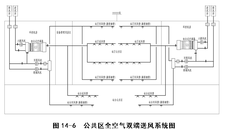 5) 通风空调系统应为乘客提供适宜的环境,为地铁工作人员和设备提供良好的工作环境和运行环境。发生事故时通风空调系统应能迅速切换到事故通风模式,排除烟气和进行事故通风,为乘客和消防人员提供新鲜空气,保障乘客安全疏散。