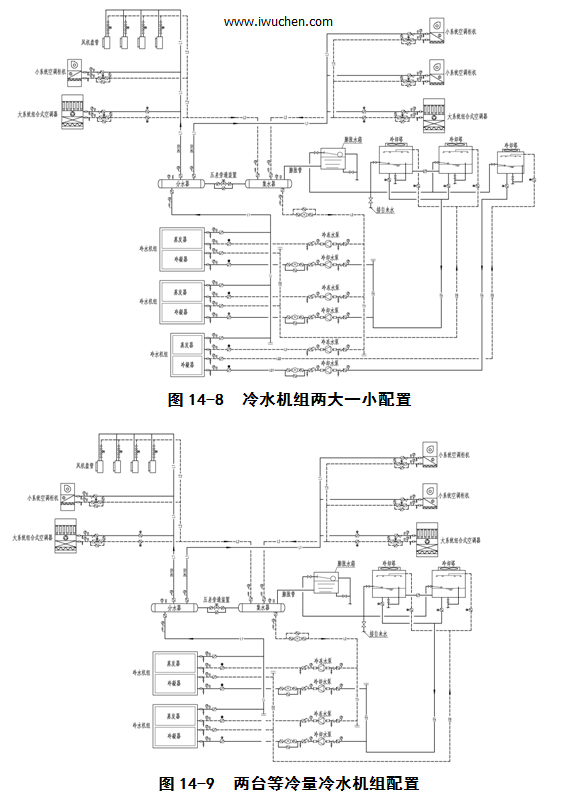 两中方案冷水系统配置详见图14-8及图14-9所示: